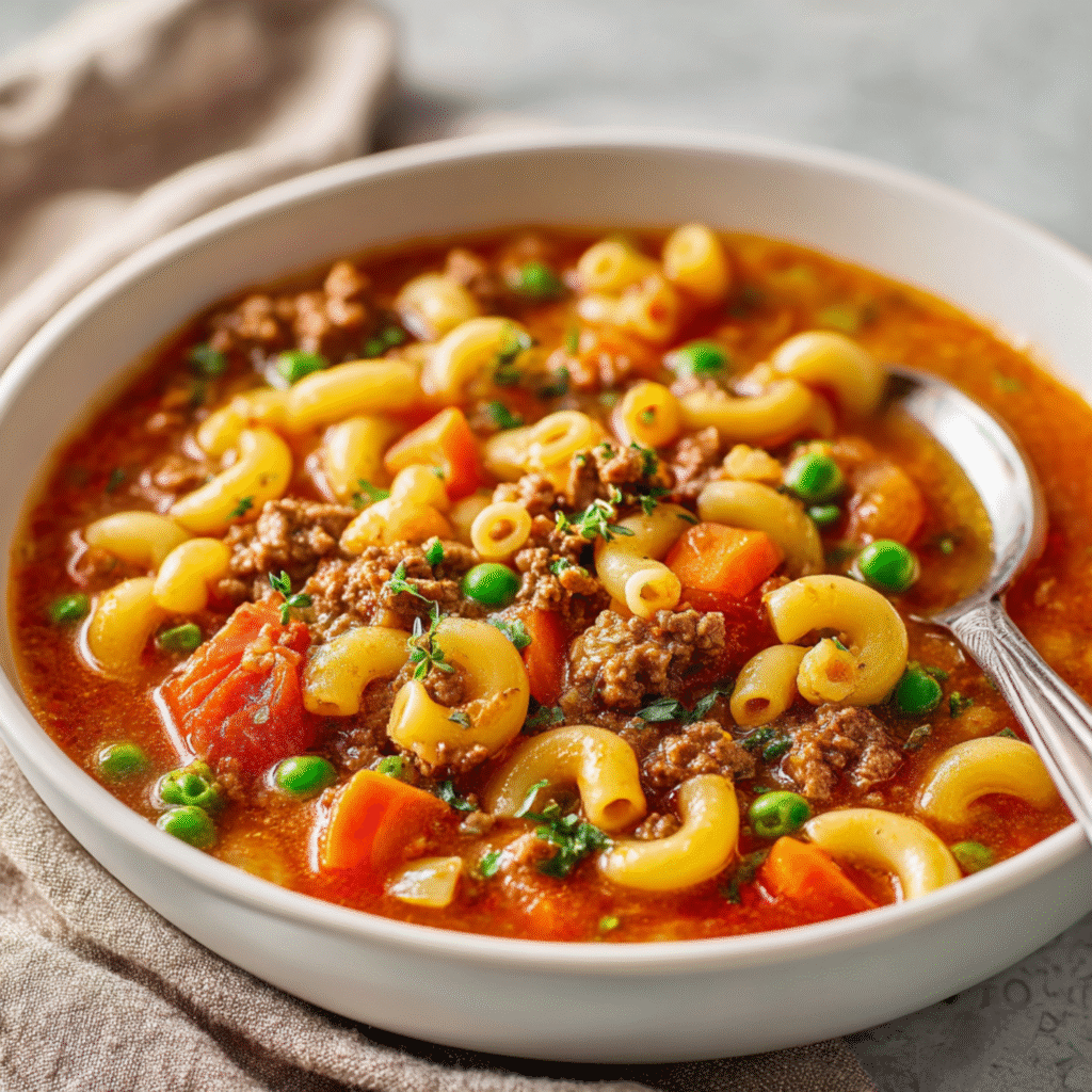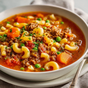 “Busy Day Soup” is a modern classic born from the idea of creating a hearty, filling meal with minimal prep and common pantry staples. Popularized in American kitchens during the mid-20th century, when convenience cooking became essential for busy families, this soup combines pasta, vegetables, and ground beef in a tomato-rich broth. Over time, it became a go-to comfort dish for weeknights—warm, nourishing, and made in just one pot.