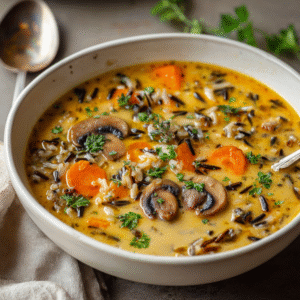 This creamy harvest wild rice soup is the definition of cozy comfort food. Rich, velvety, and brimming with earthy mushrooms, carrots, and nutty wild rice, it’s perfect for crisp autumn days or snowy winter nights. Not only is this soup hearty and satisfying, but it’s also wholesome and packed with nutrients. The best part? It’s a one-pot wonder that tastes even better the next day, making it ideal for meal prep or family dinners.