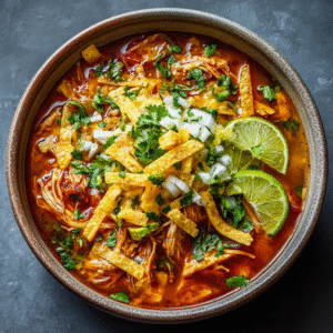 Chicken tortilla soup has its roots in Mexican cuisine, particularly from central and southern regions where corn, chilies, and chicken are staple ingredients. Traditionally, the soup is made with a tomato-based broth infused with roasted chilies, fresh herbs, and crispy fried tortilla strips for crunch. Over time, the dish migrated north and became a beloved comfort food in the United States, where slow cookers helped make it even easier to prepare. Today, it’s a popular choice for weeknight dinners, offering bold flavors with minimal effort.