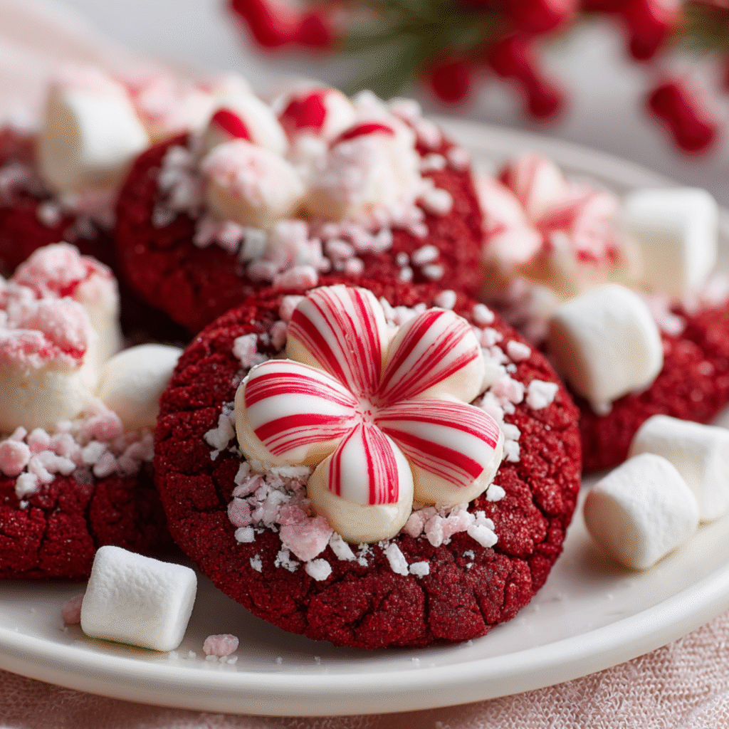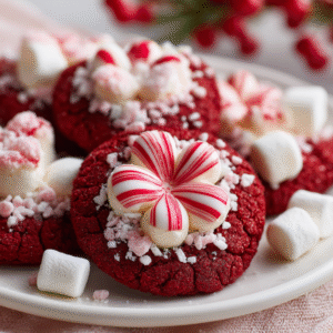 These Peppermint Red Velvet Blossoms are the ultimate Christmas cookie—soft, chewy, and bursting with holiday spirit! Perfect for cookie exchanges, gifting, or cozy nights by the tree, they combine the luxurious flavor of red velvet with the refreshing zing of peppermint. Each cookie is crowned with a striped peppermint kiss and a sprinkle of crushed candy canes for a picture-perfect finish.