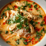 This Thai Chicken Soup is creamy, aromatic, and bursting with bold flavors. Perfect for chilly evenings or cozy family dinners, it combines tender chicken, silky noodles, and fragrant herbs in a rich coconut broth. The balance of spice and citrus makes it both refreshing and comforting. Whether you’re looking for a hearty winter meal or a flavorful soup for gatherings, this recipe brings restaurant-quality Thai flavors straight to your kitchen.