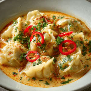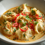 These Thai Coconut Curry Dumplings are a flavorful, comforting, and vibrant dish perfect for cozy nights or special gatherings. The soft dumplings soak up the rich, creamy curry broth, making every bite a burst of exotic flavors. Whether enjoyed on a chilly evening or served at a dinner party, this dish brings restaurant-style taste right to your home kitchen.