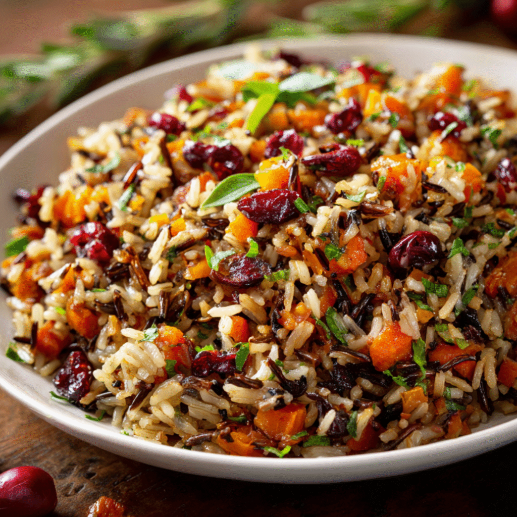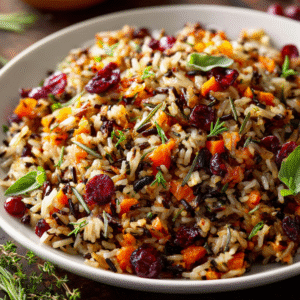 This Thanksgiving Wild Rice Pilaf is hearty, colorful, and full of autumn flavors. Made with nutty wild rice, sweet cranberries, and savory vegetables, it’s a wholesome side dish that pairs beautifully with turkey, ham, or vegetarian mains. The medley of textures—chewy rice, tender veggies, and tart cranberries—makes it festive and satisfying. Ideal for Thanksgiving, this dish is naturally gluten-free and can easily be made vegan, ensuring it pleases everyone at the holiday table.